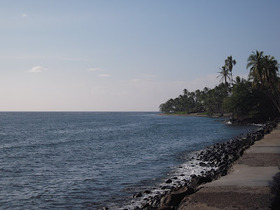 A landscaped walk runs the length of the beach fronting the resorts. We walked North to the end and the sprawling Sheraton that climbs the rocks. We toured the hotel, walked in the sand, and dipped toes in the water. The shade of the Beachwalk was all but gone and the sun intense for the walk back down the beach.